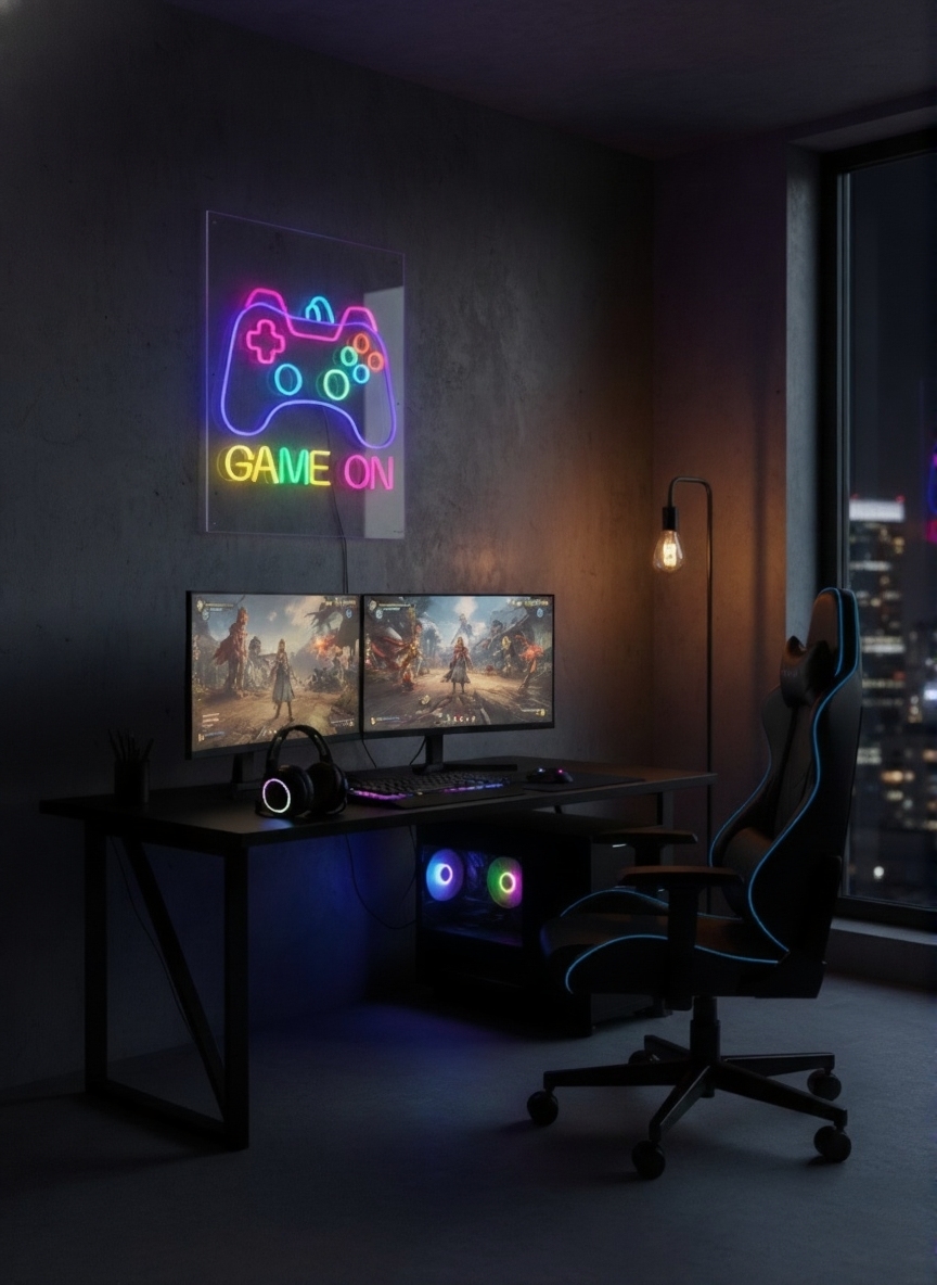 NEONİTE ‘GAME ON OYUN KOLU’ IŞIKLI NEON LED DEKORATİF DUVAR TABELASI